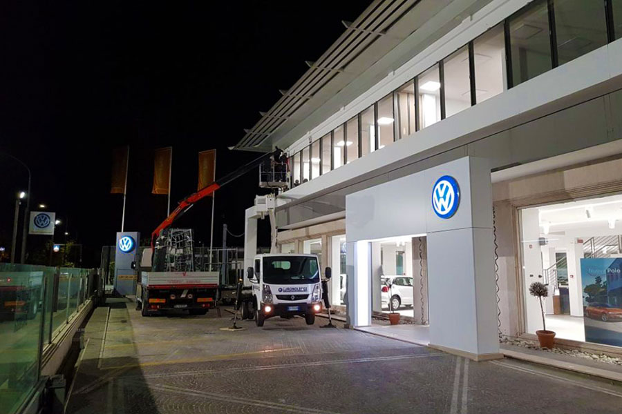 Ristrutturazione Completa Edificio Esterno Concessionaria Italwagen; l’intervento ha riguardato la ristrutturazione integrale dell’involucro esterno dell’edificio sede della concessionaria Italwagen, finalizzato all’adeguamento estetico, funzionale ed energetico della struttura esistente, in linea con le direttive architettoniche del marchio automobilistico rappresentato.