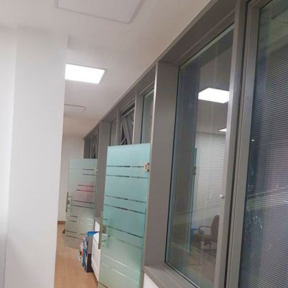 Installazione di nuove facciate ventilate in pannelli metallici. Sostituzione completa degli infissi con serramenti in alluminio a taglio termico e vetri basso emissivi. Inserimento di nuovi elementi architettonici distintivi, quali pensiline in acciaio e vetro. Realizzazione di nuova illuminazione esterna a LED, con gestione automatizzata per valorizzare l’edificio nelle ore serali e notturne.