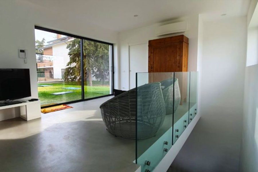 Per la zona esterna, il progetto ha previsto l’installazione di balaustre in vetro extrachiaro, pensate per valorizzare gli spazi verdi senza ostacolare la vista panoramica. La trasparenza e la leggerezza visiva delle balaustre conferiscono un tocco di eleganza contemporanea e garantiscono al contempo: