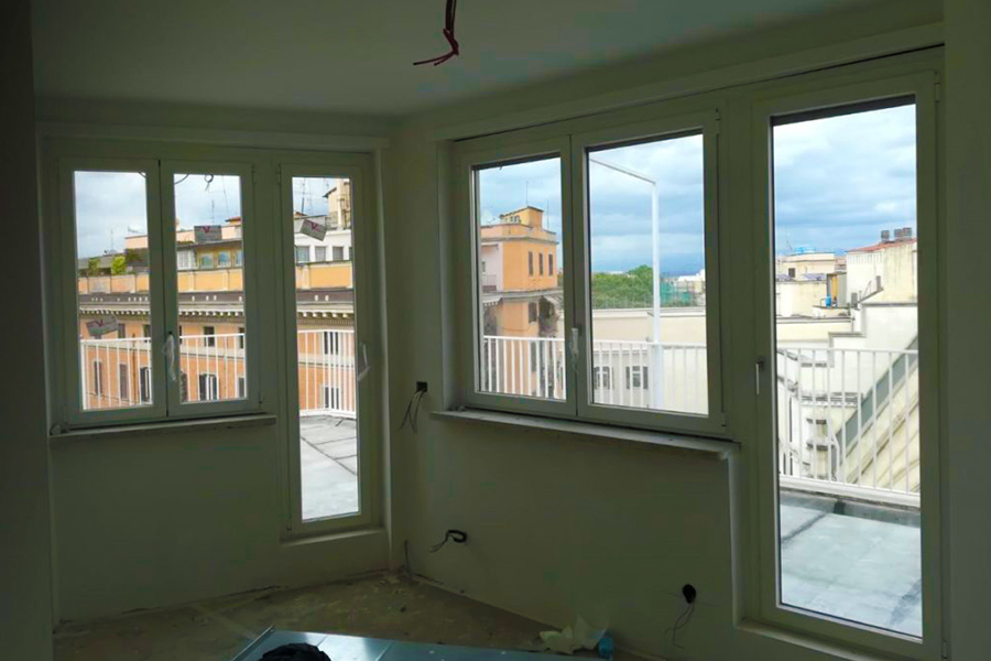 L’intervento edilizio in oggetto ha riguardato la ristrutturazione con sostituzione completa degli infissi esterni dell’intero immobile residenziale, situato nel centro storico di Roma.